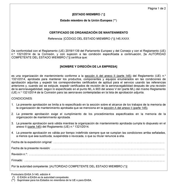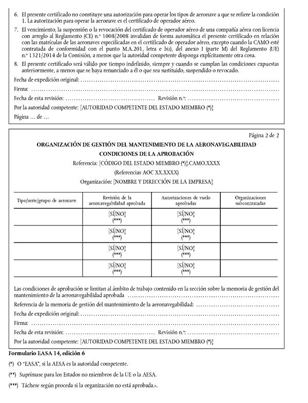Reglamento (UE) nº 1321/2014 de la Comisión, de 26 de noviembre de 2014, sobre el mantenimiento de la aeronavegabilidad de las aeronaves y productos aeronáuticos, componentes y equipos y sobre la aprobación de las organizaciones y personal que participan en dichas tareas