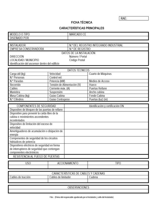 Base de Datos de Legislación Atención norma derogada, ver regulación posteriorReal Decreto 88/2013, de 8 de febrero, por el que se aprueba la Instrucción Técnica Complementaria AEM 1 "Ascensores" del Reglamento de aparatos de elevación y manutención, aprobado por Real Decreto 2291/1985, de 8 de noviembreFichaVersiones/revisionesFicha:ÓrganoMINISTERIO DE INDUSTRIA, ENERGIA Y TURISMOPublicado en BOE núm. 46 de 22 de Febrero de 2013Vigencia desde 23 de Febrero de 2013. Revisión vigente desde 01 de Julio de 2021Versiones/revisiones: