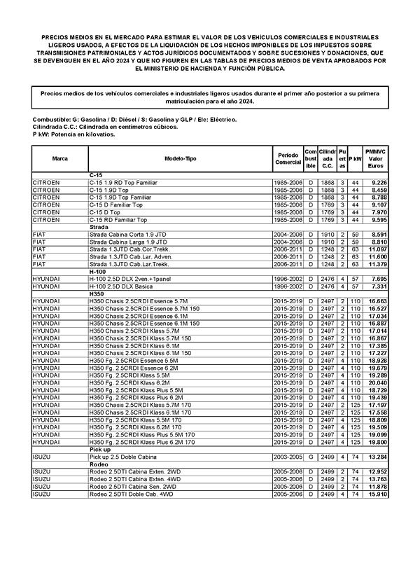 Orden de 2 de diciembre de 2022 por la que se aprueban los precios medios en el mercado para estimar el valor de determinados vehículos usados, a efectos de la liquidación de los hechos imponibles de los Impuestos sobre Transmisiones Patrimoniales y Actos Jurídicos Documentados y sobre Sucesiones y Donaciones, que se devenguen en el año 2023 y que no figuren en las tablas de precios medios de venta aprobados por el Ministerio de Hacienda y Función Pública