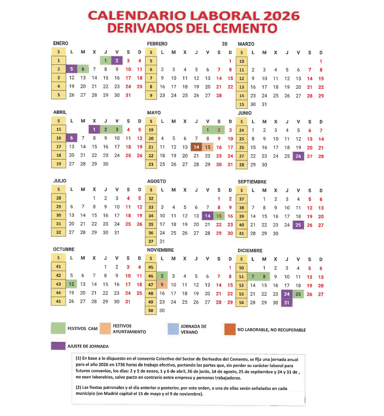 Resolución de 22 de diciembre de 2025, de la Dirección General de Trabajo de la Consejería de Economía, Hacienda y Empleo, sobre registro, depósito y publicación del Acta de 1 de diciembre de 2025 de la Comisión Negociadora, por la que aprueba el calendario laboral para el año 2026 del convenio colectivo del Sector de Derivados del Cemento