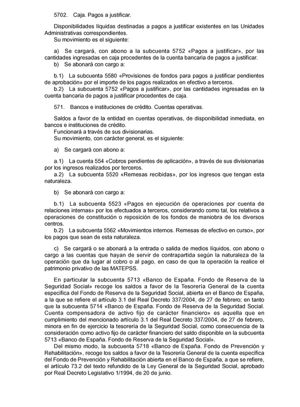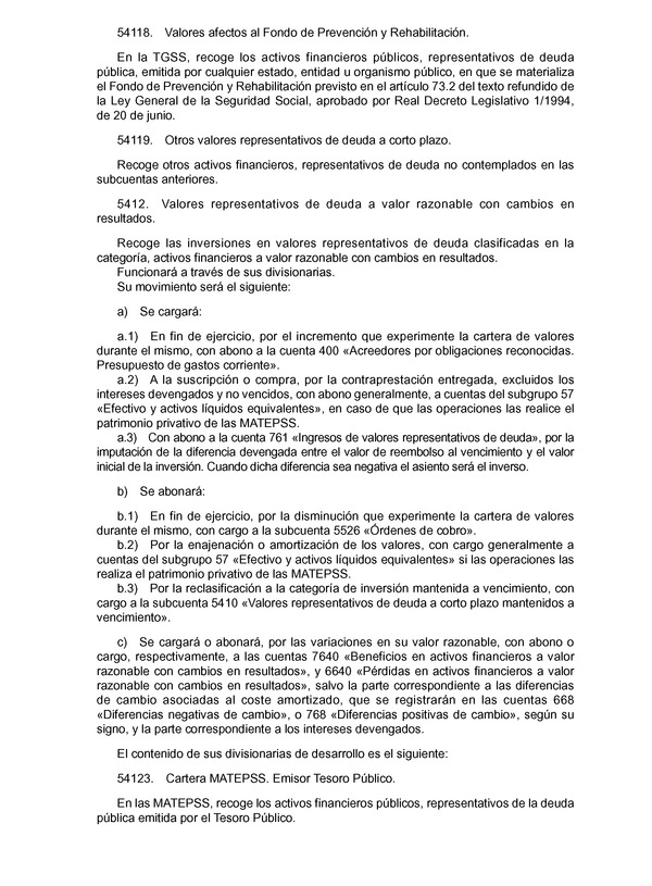 Base de Datos de Legislación Resolución de 1 de julio de 2011, de la Intervención General de la Administración del Estado, por la que se aprueba la adaptación del Plan General de Contabilidad Pública, a las entidades que integran el sistema de la Seguridad SocialFichaVersiones/revisionesFicha:ÓrganoMinisterio de Economía y HaciendaPublicado en BOE núm. 168 de 14 de Julio de 2011Vigencia desde 15 de Julio de 2011. Revisión vigente desde 20 de Octubre de 2023Versiones/revisiones: