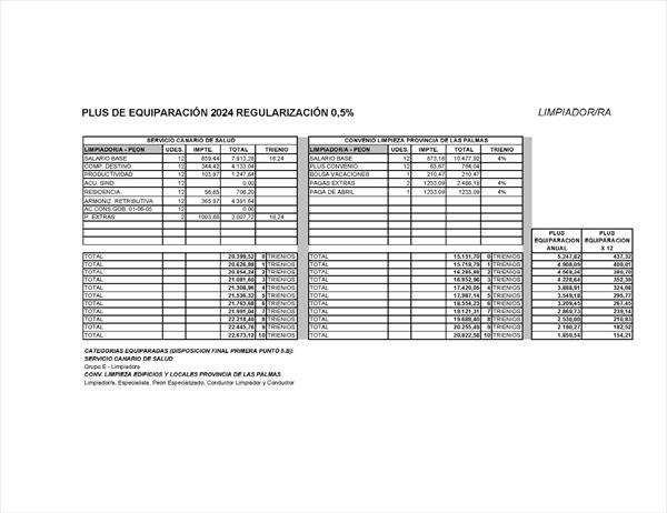 Base de Datos de Legislación Resolución de 7 de noviembre de 2025 de la Dirección General de Trabajo, de aprobación del Acuerdo sobre tablas salariales del convenio colectivo de limpieza de edificios y locales de la provincia de Las PalmasFichaVersiones/revisionesFicha:ÓrganoConsejería de Turismo y EmpleoPublicado en Vigencia desde 18 de Agosto de 2025Versiones/revisiones: